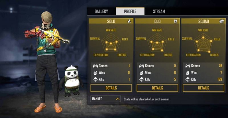 In the solo and duo modes, the content creator has played 1 and 5 matches, respectively.
