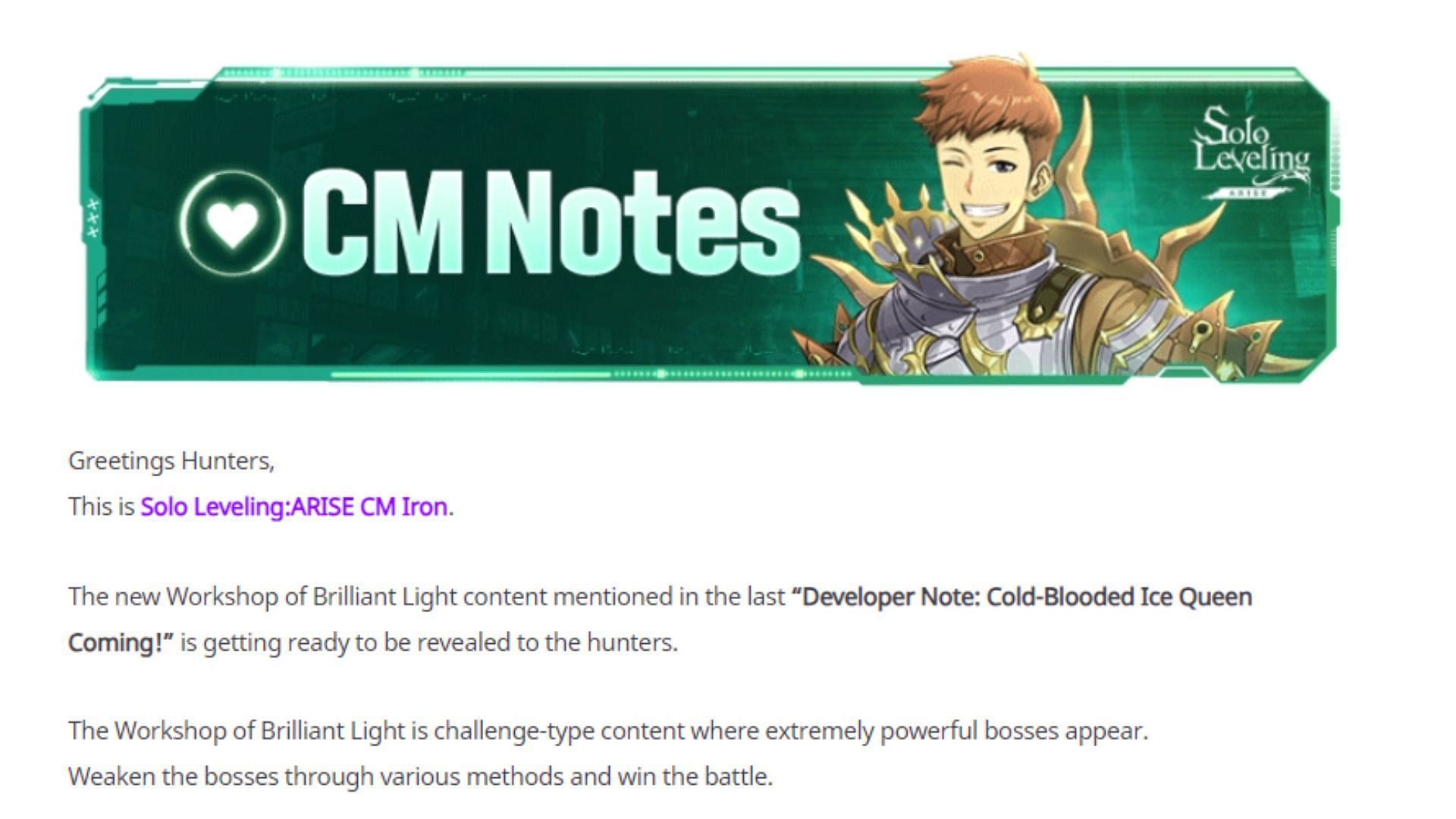 Solo Leveling Arise Upcoming content: Workshop of Brilliant Light