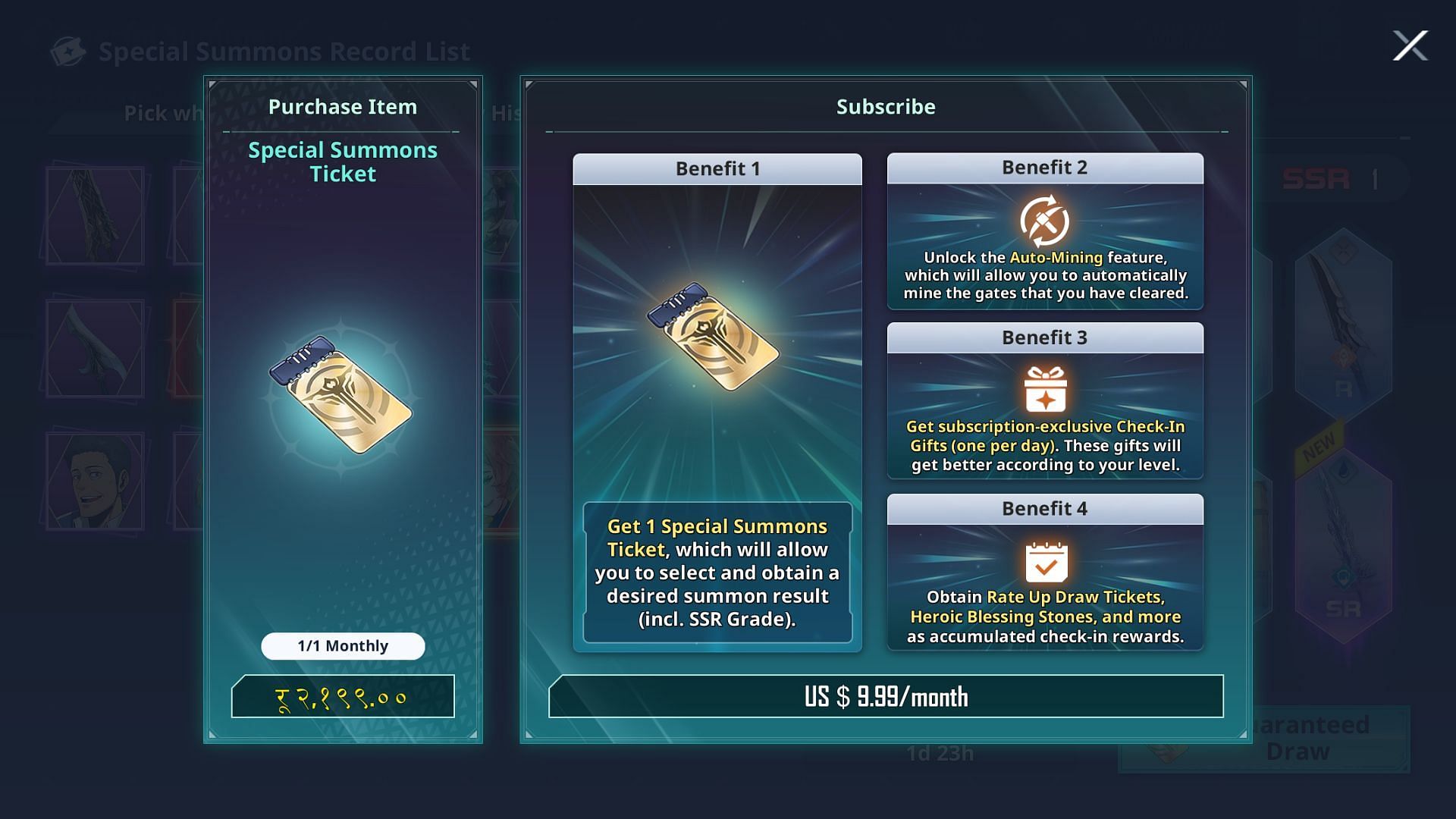 Coming to the monetization aspects now, there is a lot to talk about. The banners are mostly fine with a similar pity system and a 0.6% SSR rate up as most modern gacha games do. There is a 50:50 chance for limited banners and it does come with one of the weirdest choices I have seen in a gacha title.
