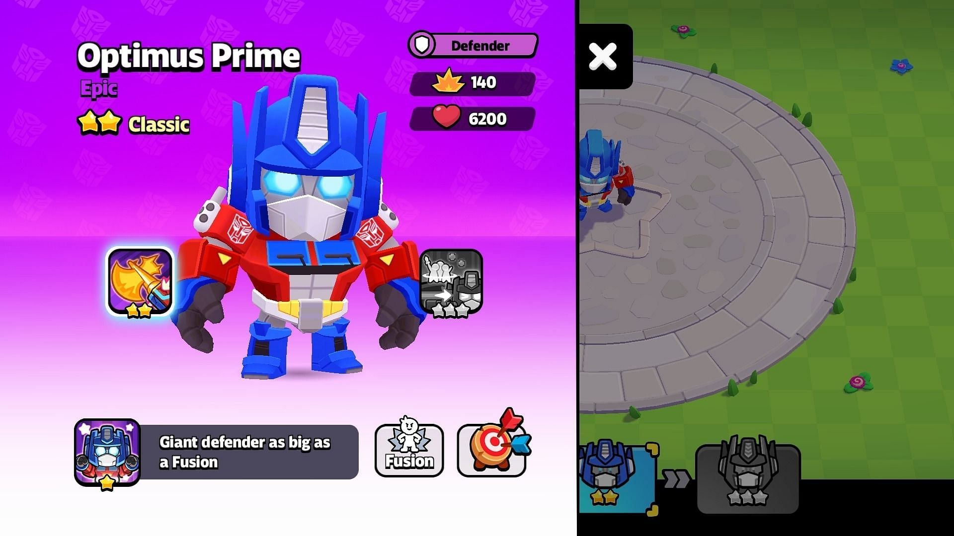 Optimus Prime is a potent Defender, having the highest hit points in the game. However, he only deals moderate damage and requires some Attackers like Colt and Archer Queen in his squad for offense.