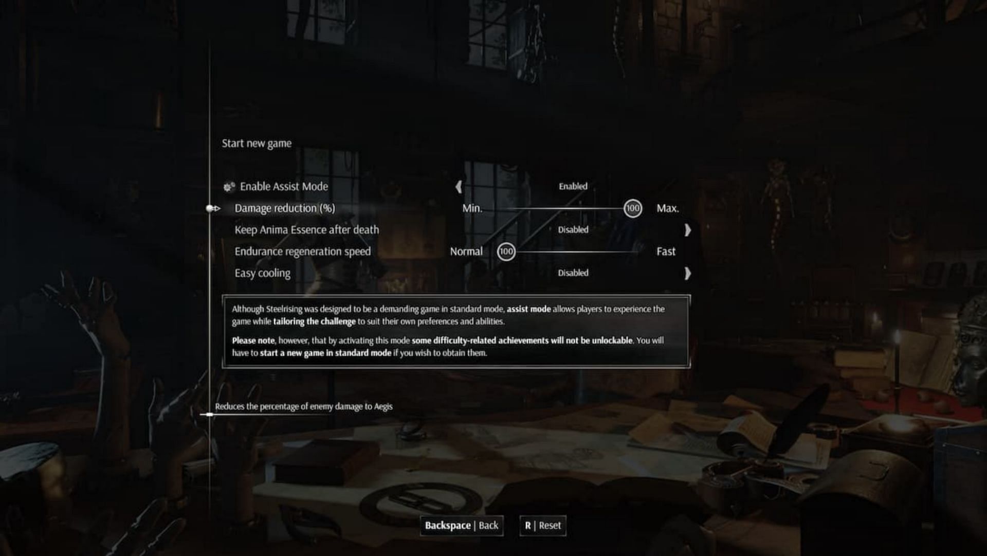 All players have to do is click the Assist Mode from “disabled” to “enabled,” and it’s on. A variety of settings appear. Here’s what they can change in Steelrising’s assist mode.