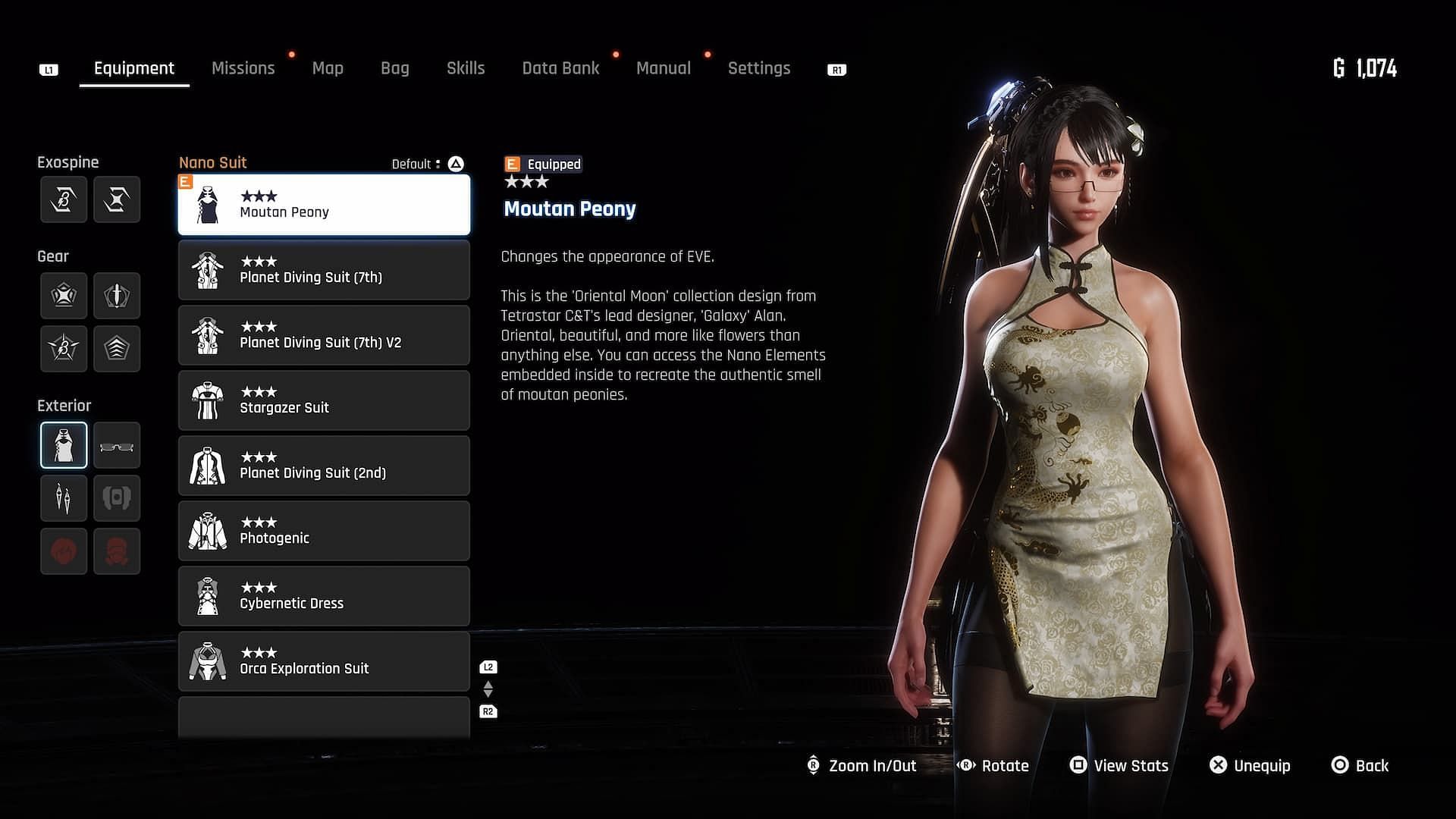 An interesting addition to Stellar Blade is its outfits. You can unlock (and purchase) several outfits for EVE throughout the game's campaign. This includes both practical frames and casual outfits, along with accessories like glasses and earrings. While none of the mentioned items carry stat bonuses, I did enjoy playing dress-up with EVE, placing a decent chunk of my resources into crafting these suits.