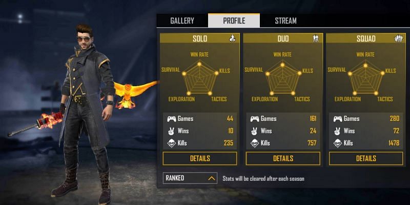 He has also played 5 duo games and has a single Booyah, which makes his win rate 20%. With 8 kills to his name, he has a K/D ratio of 2.00.