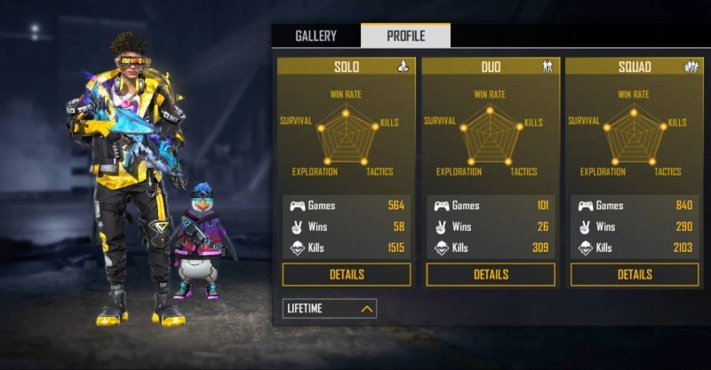 Sultan Proslo has also played 564 solo games and has emerged victorious in 58 of them, translating to a win rate of 10.28%. He has notched up 1515 kills at a K/D ratio of 2.99 in these matches.
