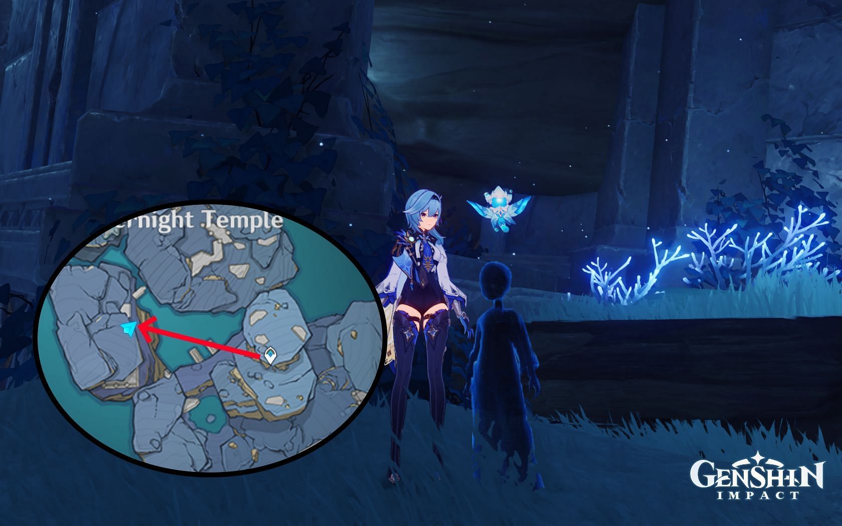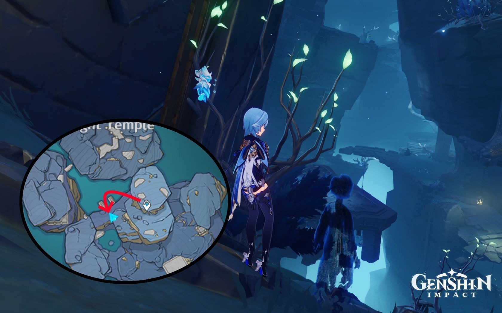 Remember that every location can be accessed quickly from the southern Teleport Waypoint on Evernight Temple. As for Rikoru, he is located a little bit west of Isumenasu. Teleporting to that Teleport Waypoint and gliding to the northwest will get players here quickly.