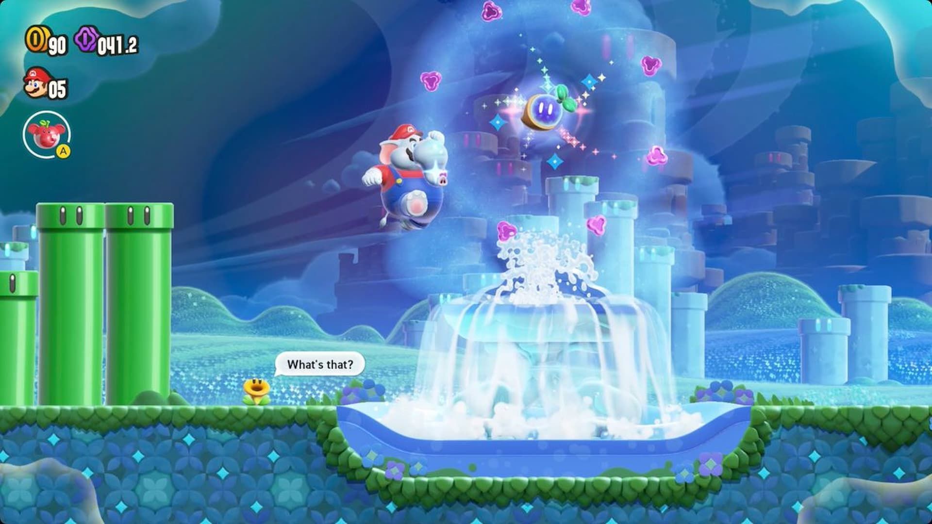 You should find a yellow pipe conveniently placed above you. Go up this pipe to find the hidden exit. This unlocks three new courses: the Twilight Forest, Cosmic Hoppos, and Expert Badge Challenge Jet Run I. Complete these to unlock the W1 special world course. When you finish this one, you get two Wonder Seeds and three Flower Coins.