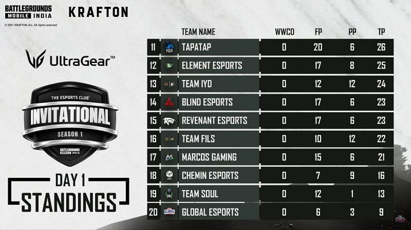 The first day of The Esports Club: BGMI Invitational Season 1 came to an end today. After a grueling battle of 5 matches between 20 invited teams, TSM FTX emerged as the table toppers with 66 points and 28 finishes.