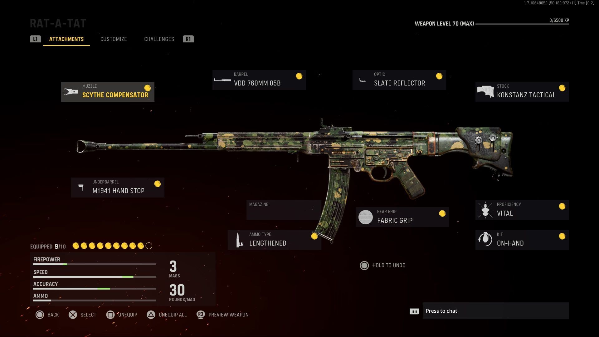Then there are the passive stat changes such as ammo type, proficiency, and kit. Lengthended bullets give a +3 bullet velocity which is crucial to the lethality of the weapon. For the Proficiency stat, Vital is perhaps the most important addition to the STG44 as it provides a larger hit box for critical hits. Which kit players choose isn't as important, but On Hand is useful for carrying equipment.