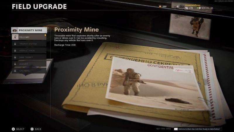 For the Field Upgrade, a Proximity Mine will do just wonderfully. While sending a barrage of RPD bullets into the enemy team, protecting the flank will be a bit difficult. Setting up the Proximity Mine will do that job and even net some more destruction.