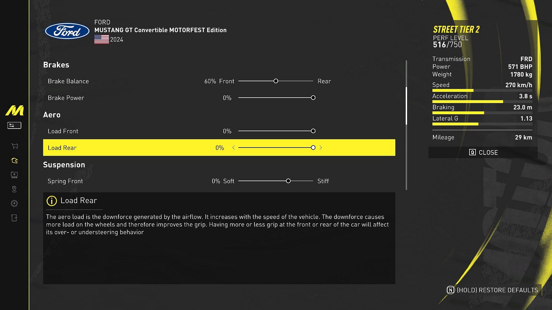 That said, you have prompts that also tell you what each parameter does, and the effect that it will have on your vehicle. You can tinker with this as much as you like, and the results are visible too.