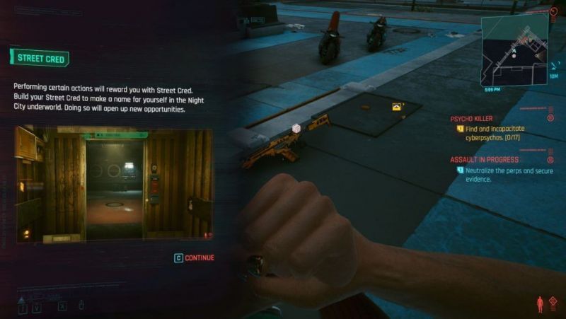 Simply pull the map and look for the giant exclamation points. These are all missions that can be started, or completed if they are part of a mission in progress. Not just that, blue indicators of different kinds will show up while driving or walking around Night City. These are quick ways to earn Street Cred in Cyberpunk 2077.