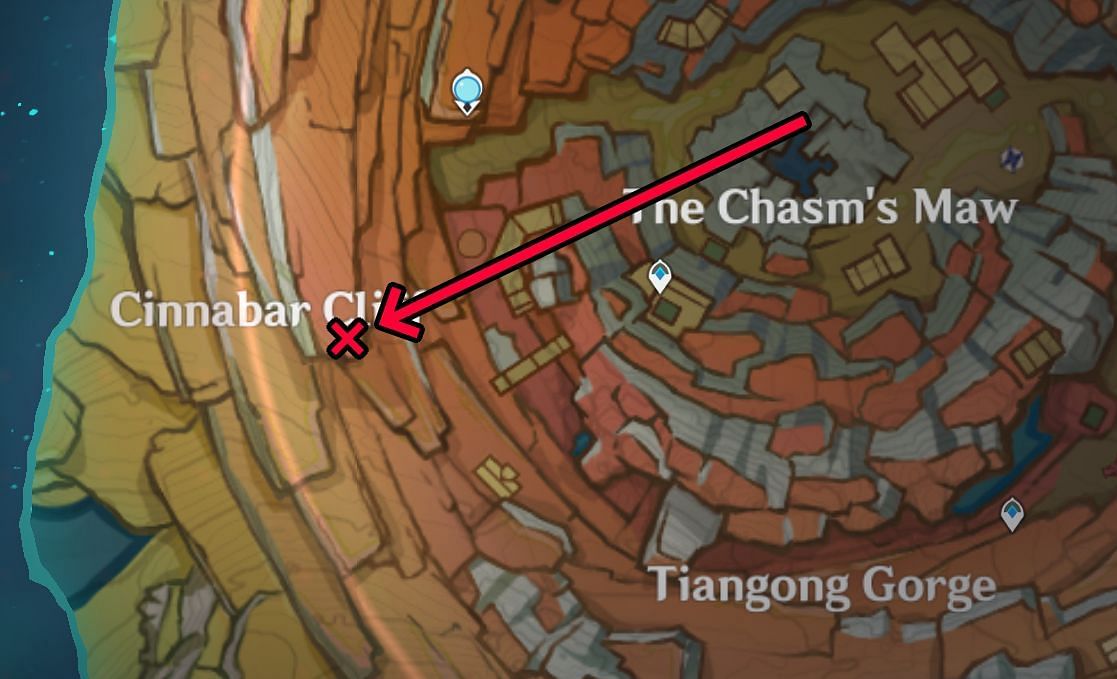 Genshin Impact players seeking the Flower of Farsight should know that it's located near Tang Wuchou on Cinnabar Cliff. More specifically, it's near the "C" in "Cliff" when one views it on the world map.