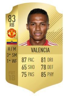 Valencia is currently rated 83 overall, with a pace of 87, a shooting power of 65 and a passing stat of 75. His dribbling skill is 81, defence is 78 and his physical score is 85. He also has a 3-star skill rating but the 1-star weak foot rating sticks out like a sore thumb.
