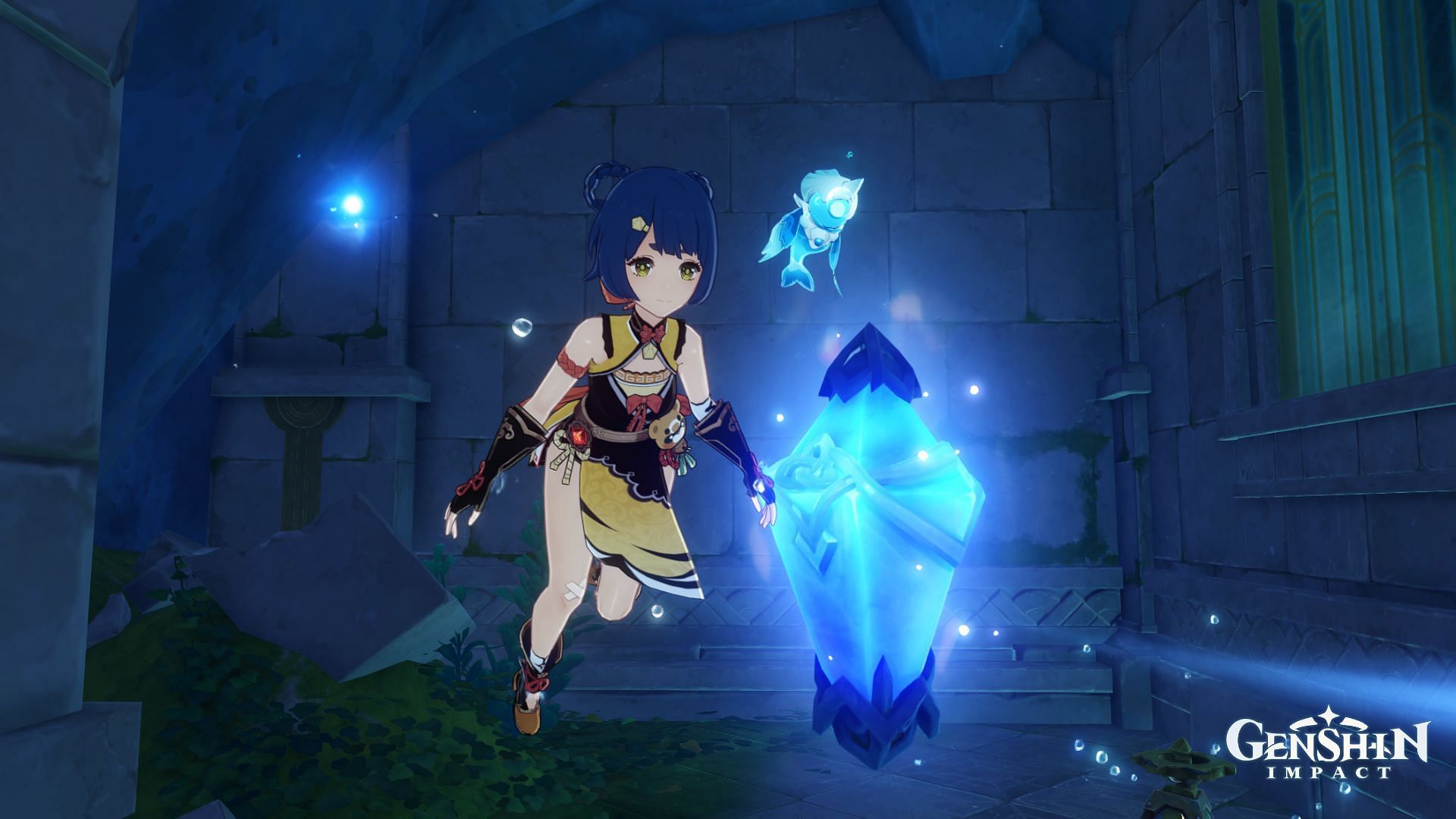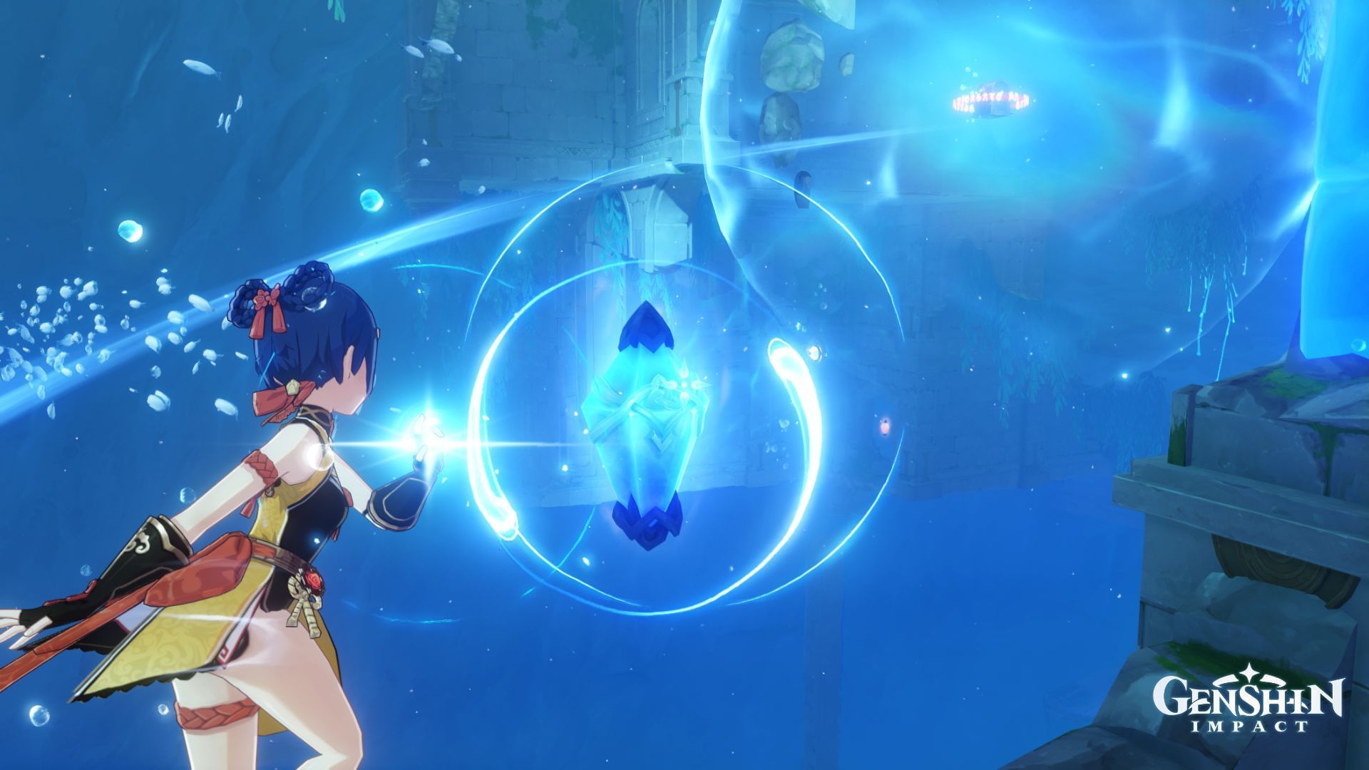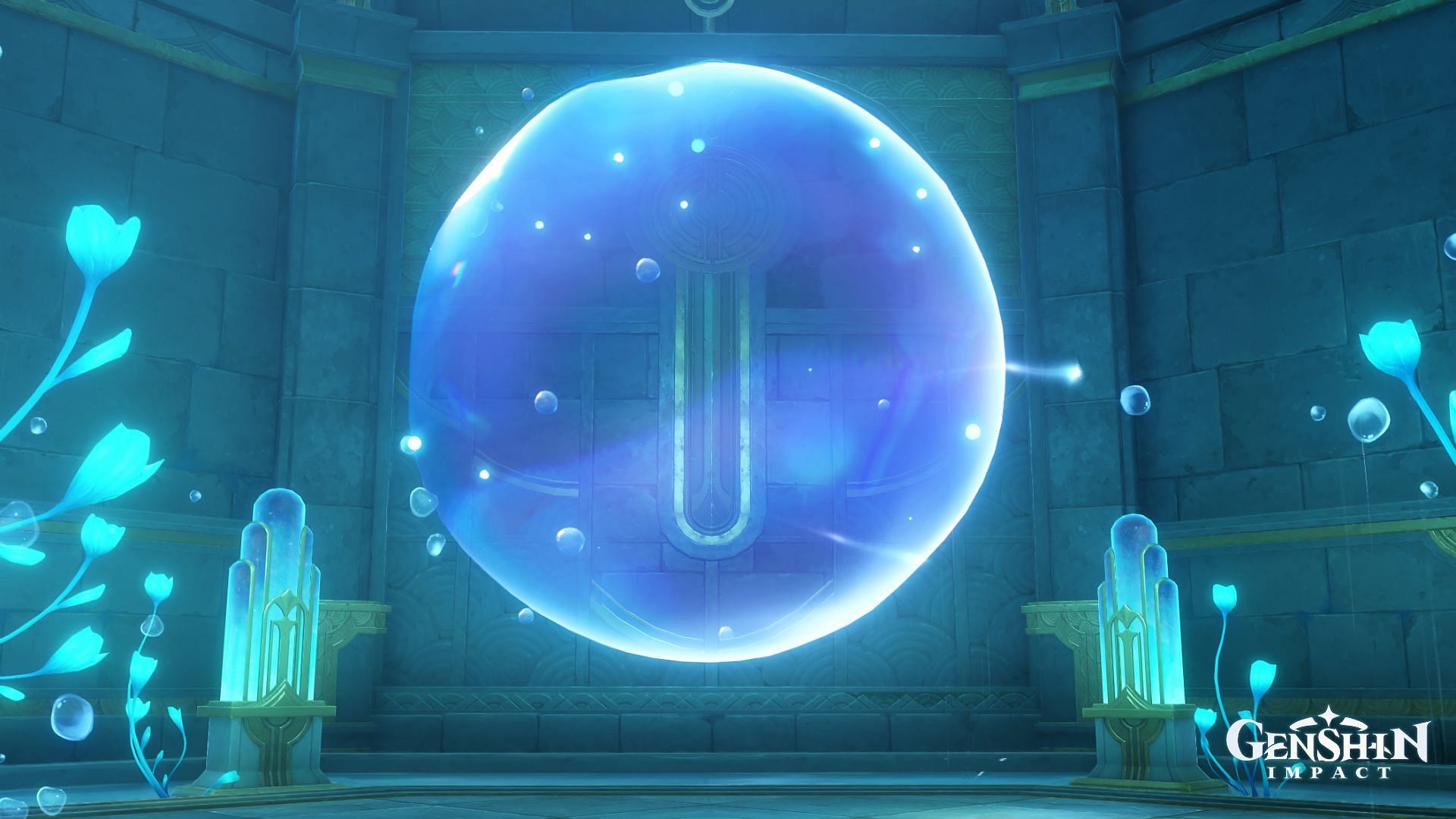 Like before, Genshin Impact players need to attack the blue crystal. The nearby gate will open, allowing you to escape elsewhere. In the meantime, another bubble will float through a ring, breaking the second seal of The Story of "the Princess" and "the Adventure Team" in Genshin Impact.