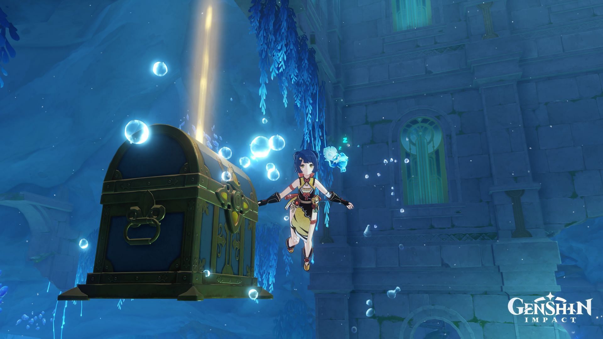 Just remember to avoid using Hydro attacks, and this should be an easy fight. After another cutscene plays, make sure to enter the water bubble to proceed. Open the nearby Precious Chest for free Primogems and other small loot before heading into the unknown void before you.