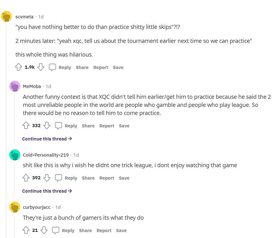 Most people on Reddit agreed with xQc and thought that Tyler1's rage was hilarious: