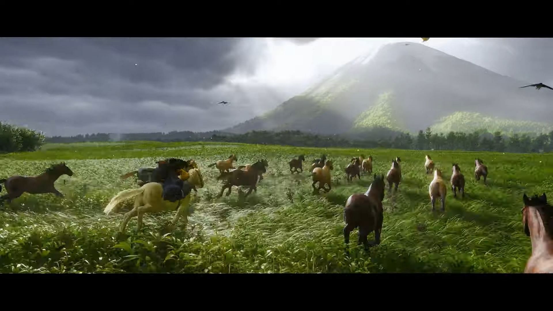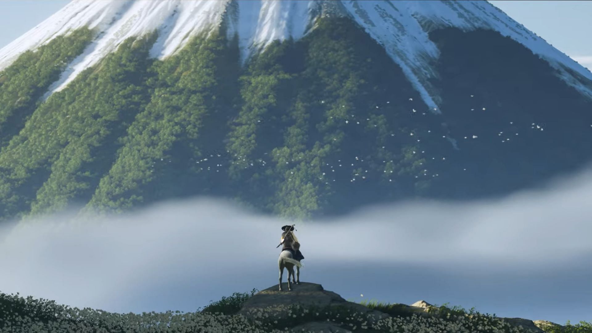 This time around, Ghost of Yotei is paying homage to Spaghetti Westerns. This is quite prominent in the music for the trailer, as well as some shots like the one where Atsu is riding through a field full of wild horses.