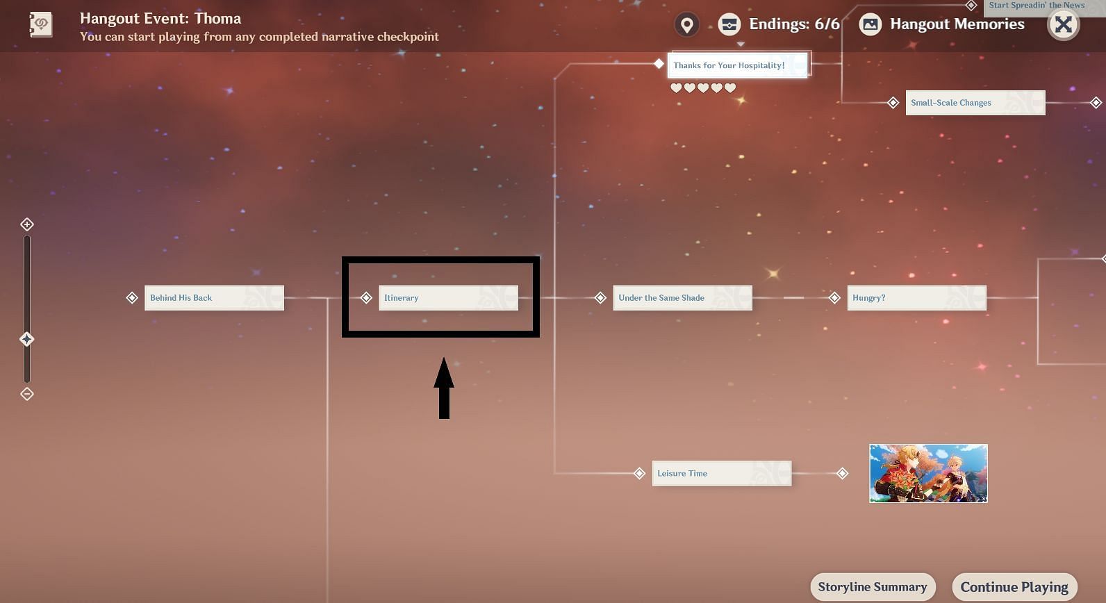One can start the Hangout Event by consuming two Story Keys that can only be received after completing a certain number of Daily Commissions. Thoma's Story Quest provides six endings with Hangout Memories and a myriad of rewards.