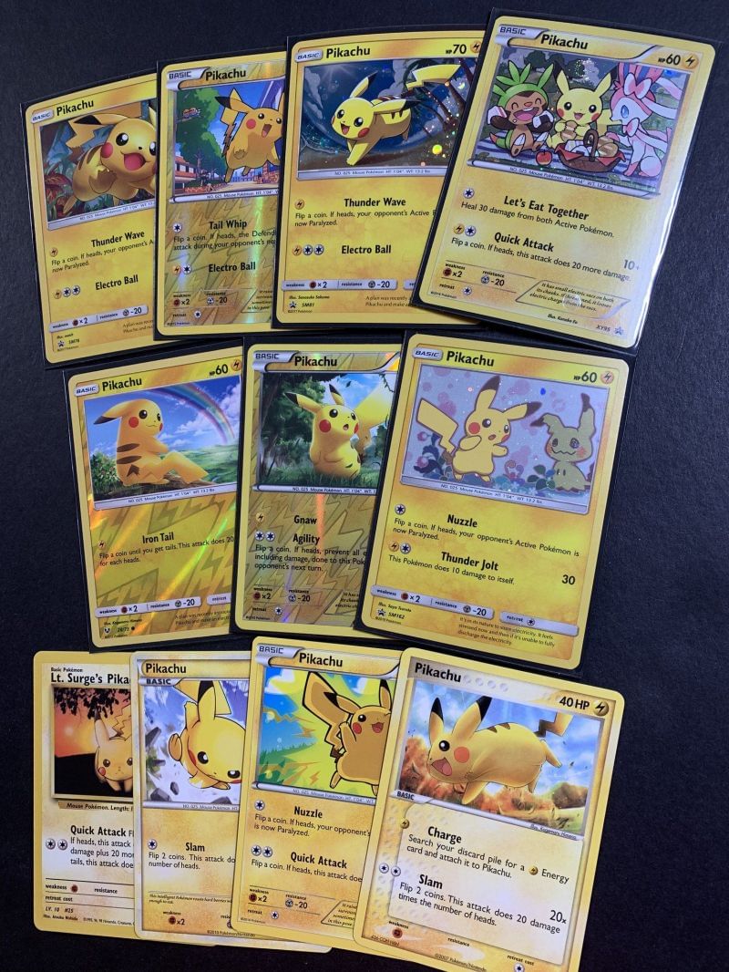 The first edition Pikachu card, non-holographic, is still worth a decent amount of money. Lately, Pikachu has been seen in more and more sets. The Rainbow Rare Pikachu VMAX card from Vivid Voltage is just the more recent example of Pikachu's popularity and value. Just about any Pikachu card is worth the search.