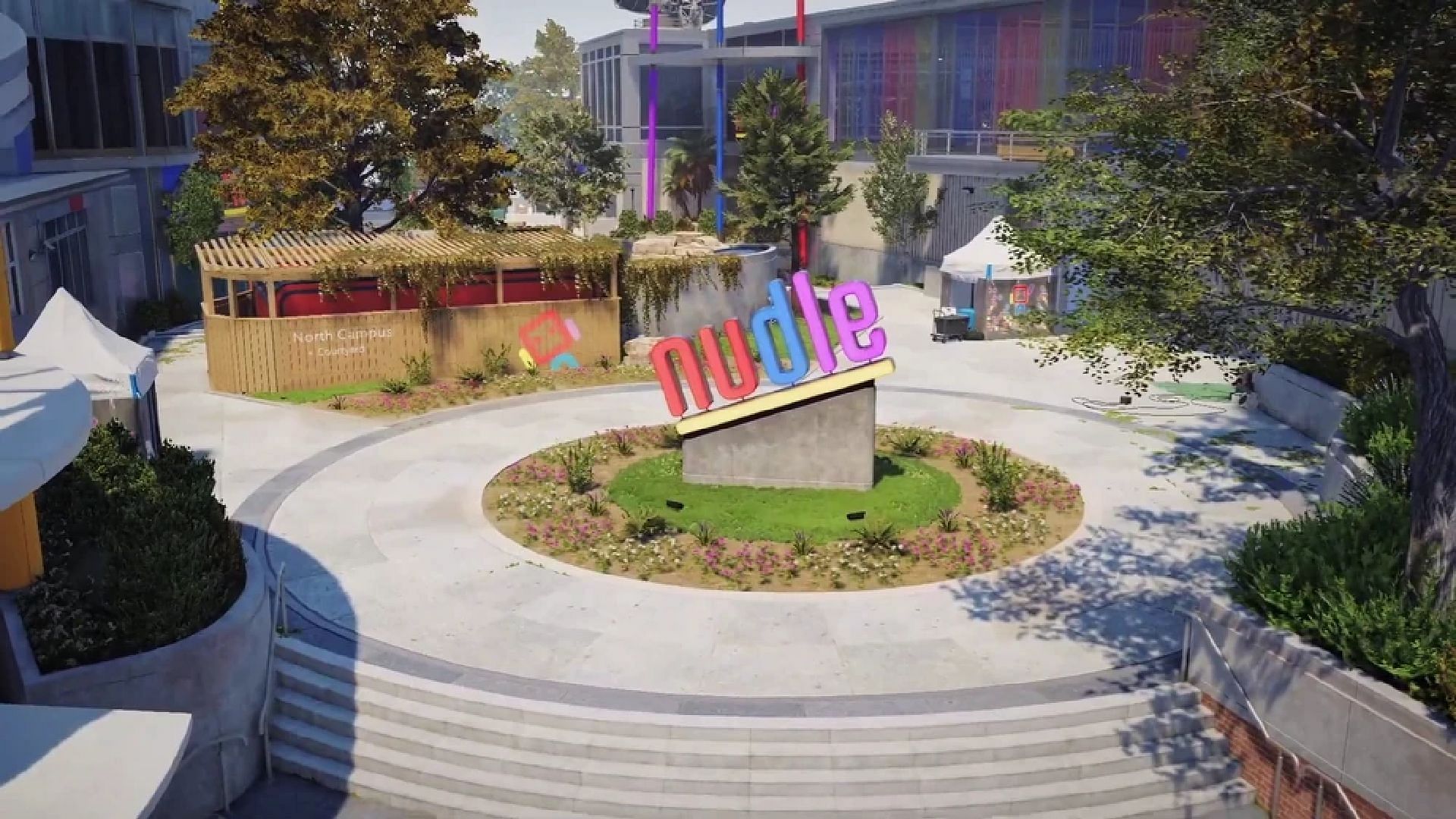 The Nudleplex map features a mix of both indoor and outdoor combat opportunities. The faction, DedSec, perfectly fits in this map, as their abilities like Spiderbot and Hijak easily take control over enemies in both indoor and outdoor fights.