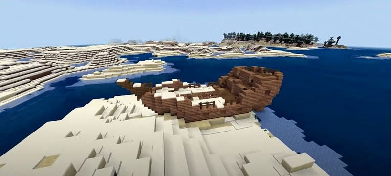 The crew on this Minecraft ship must have had some issues with the snowy weather and rough seas. For those who prefer colder temperatures, this seed offers players the perks of a shipwreck with this cold beach.
