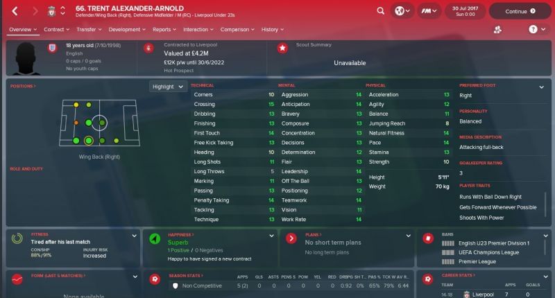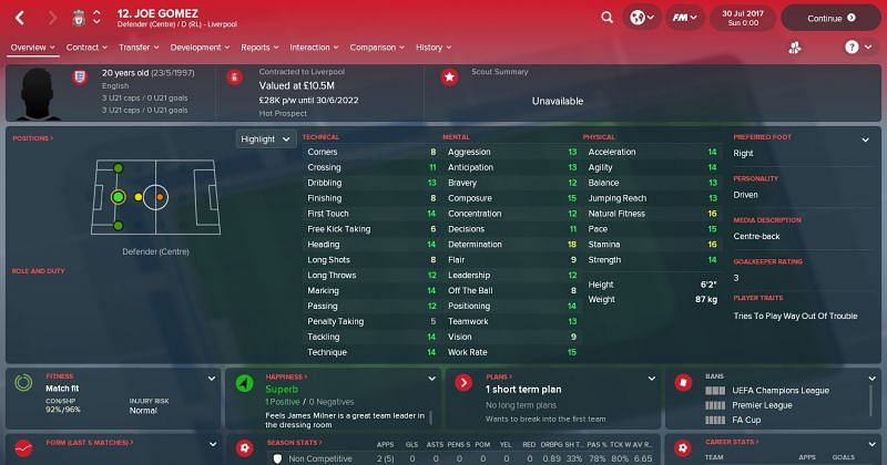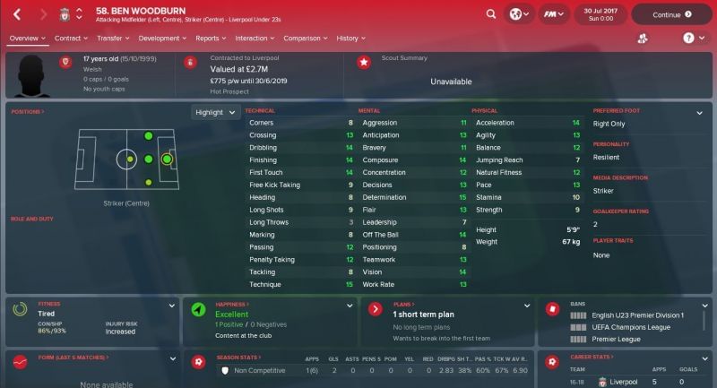 That is probably why he has not made any appearances so far this season, with Klopp keen on easing the pressure on the Welsh striker. In Football Manager 2018, Woodburn is in the U-19 side and much like in real life is starring for them.