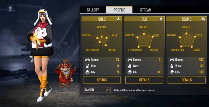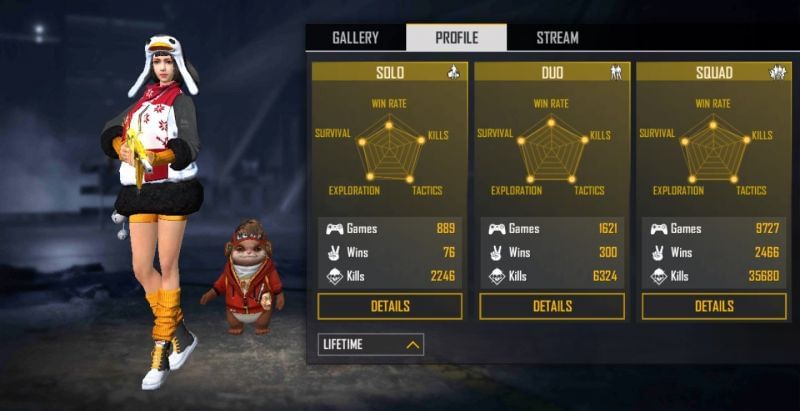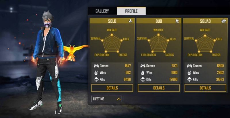 The internet star has played 1647 matches in the solo mode and has 502 wins at a win percentage of 30.47%. In the process, he has amassed 6490 frags for a K/D ratio of 5.67.
