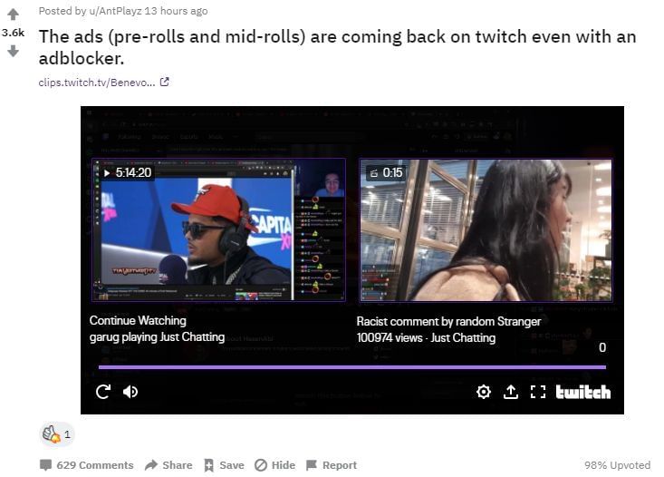 Viewers on Twitch have complained about this problem multiple times. Around a year ago, various users posted on Reddit complaining about a new ‘ad system’. Certain regions and browsers had ads popping up irrespective of ad-blockers.