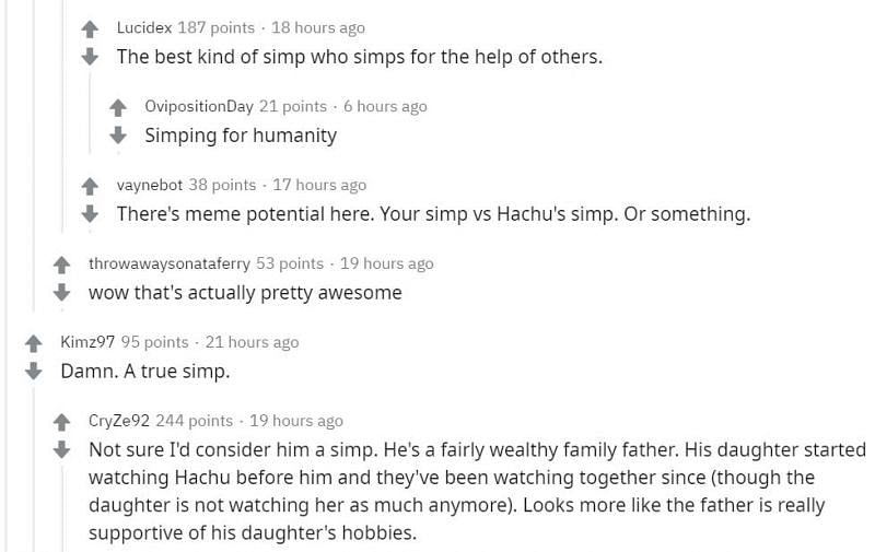 Check out some of the reactions online as Reddit users reacted to the masked admirer, aka Hachubby's 'biggest simp':