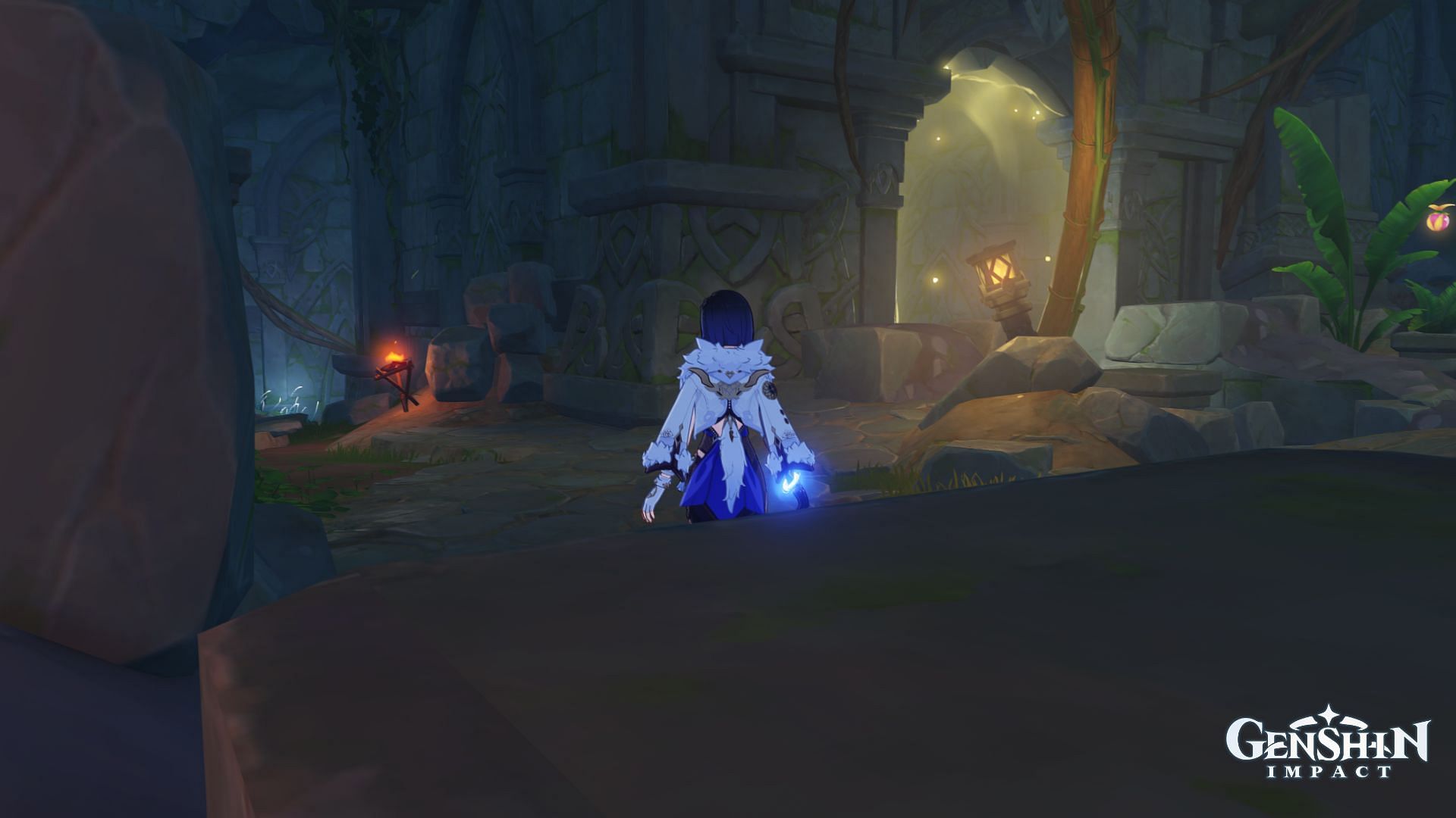 Seal #2: Head east of the mural until you reach some ruins similar to the above photo. Head toward the left path with the torch since it's open. After you continue on this route, you will eventually see a Hydro Eidolon surrounded by torches. Use a Hydro attack on the flames to put them out so the Hydro Eidolon can leave.