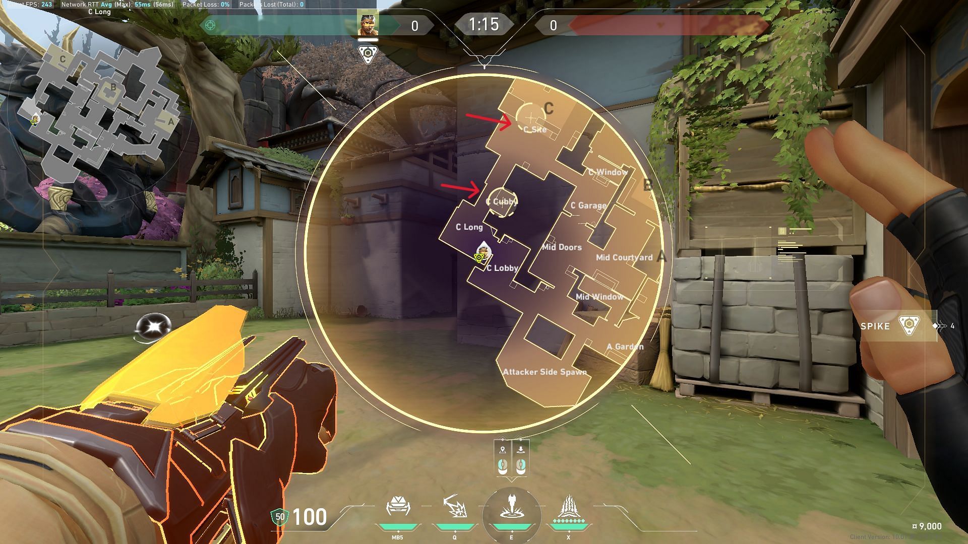 If the enemies have already taken control of the C-Site and you are expecting company from Mid, launch the Guided Salvo Missiles on the C-Default and C-Garage entry to delay the spike plant or mislead enemies pushing from Mid.