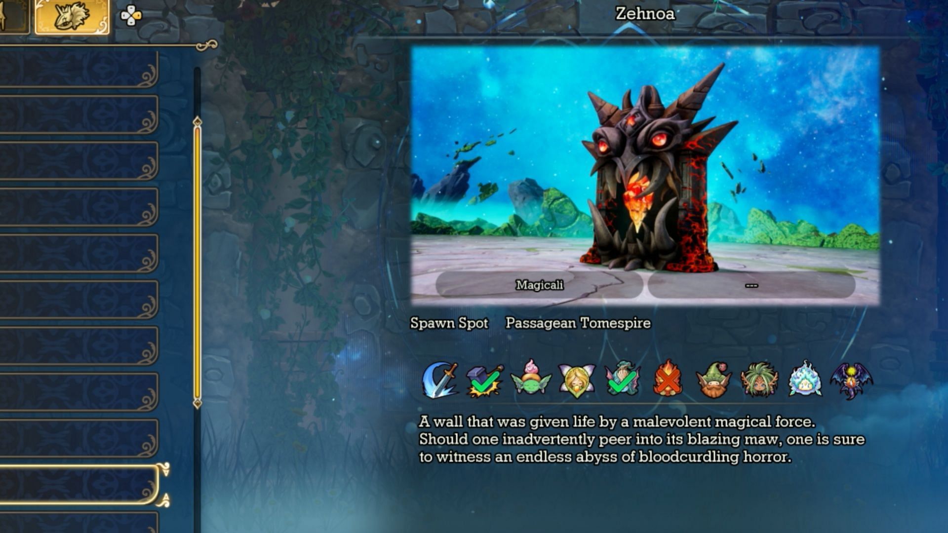 Zehnoa is a Level 26 Magical boss in Visions of Mana’s Passagean Tomespire dungeon. This boss is weak to Bludgeoning damage and Water Magic and is Immune to Fire Magic. It has no other weaknesses worth noting.