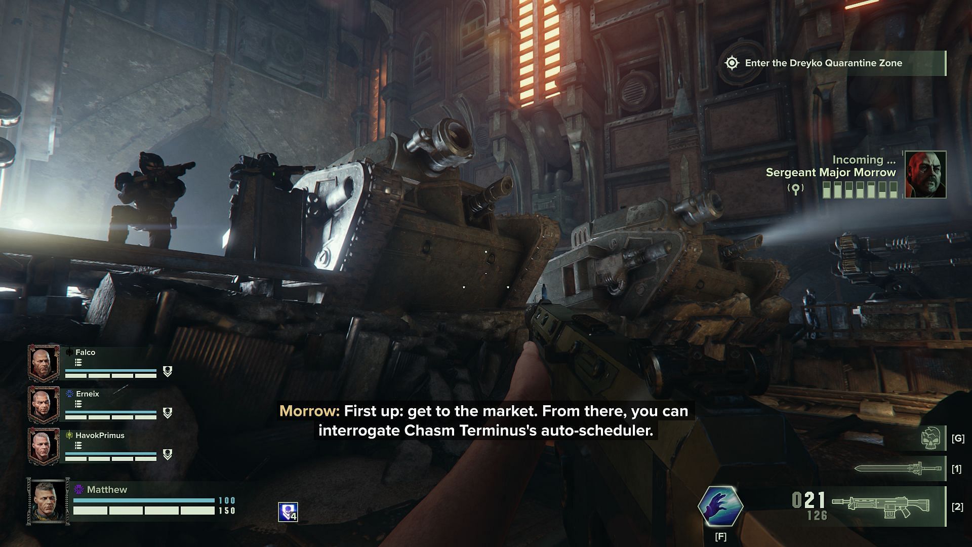 Your life will be spared and you will be conscripted by Explicator Zola, who's a key character in the Inquisition. From here on out, once basic training has been completed, you will be able to team up with other Rejects to pull off suicidal missions in different sectors within Tertium. This is where the term 'grimdark' takes on a whole new meaning in Warhammer 40,000: Darktide.