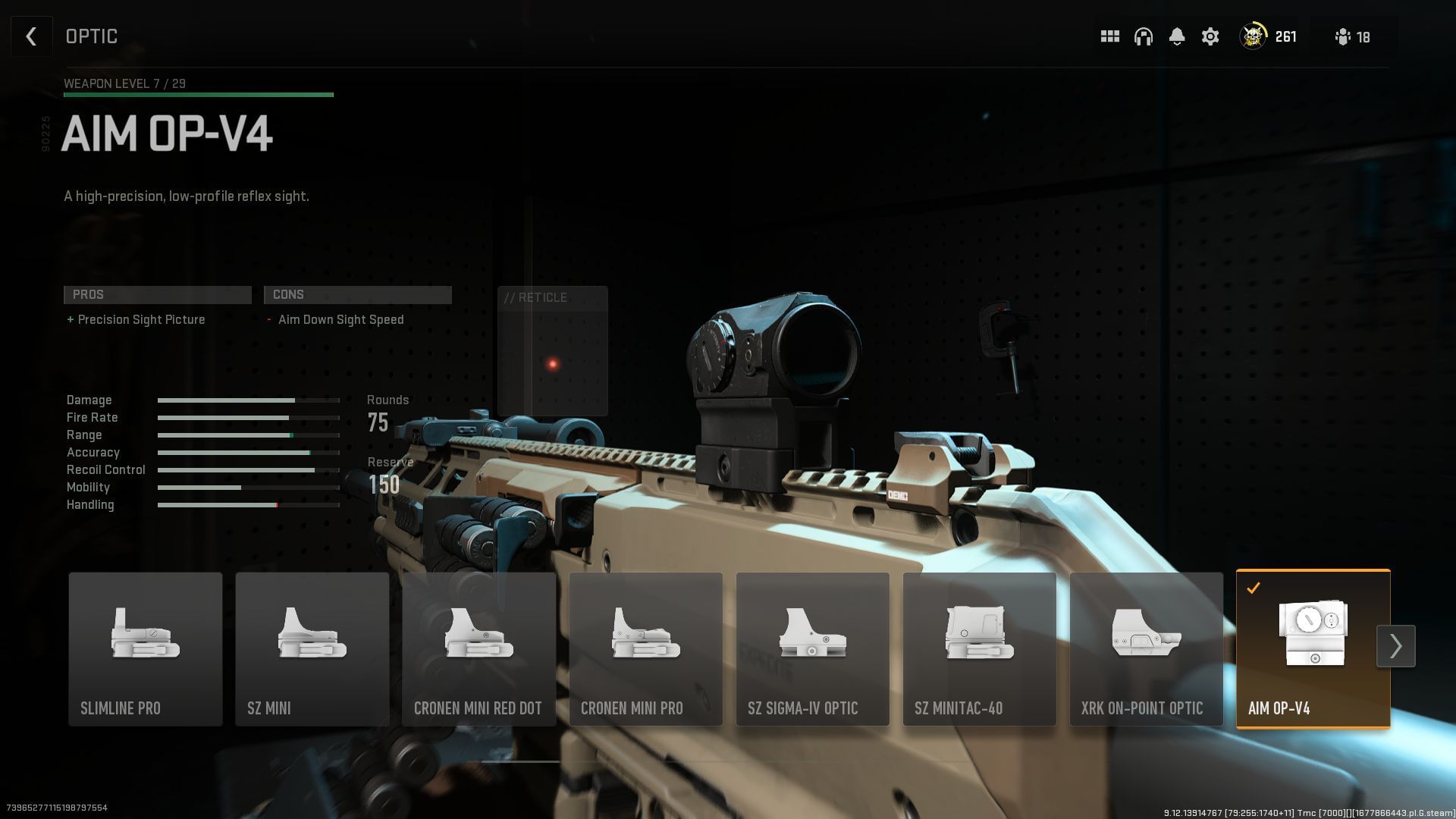 Optic: Aim OP-V4 is a clean optic sight. While it doesn't come with higher zoom levels, it provides a clear picture of the targets without taking up much of the field of view.