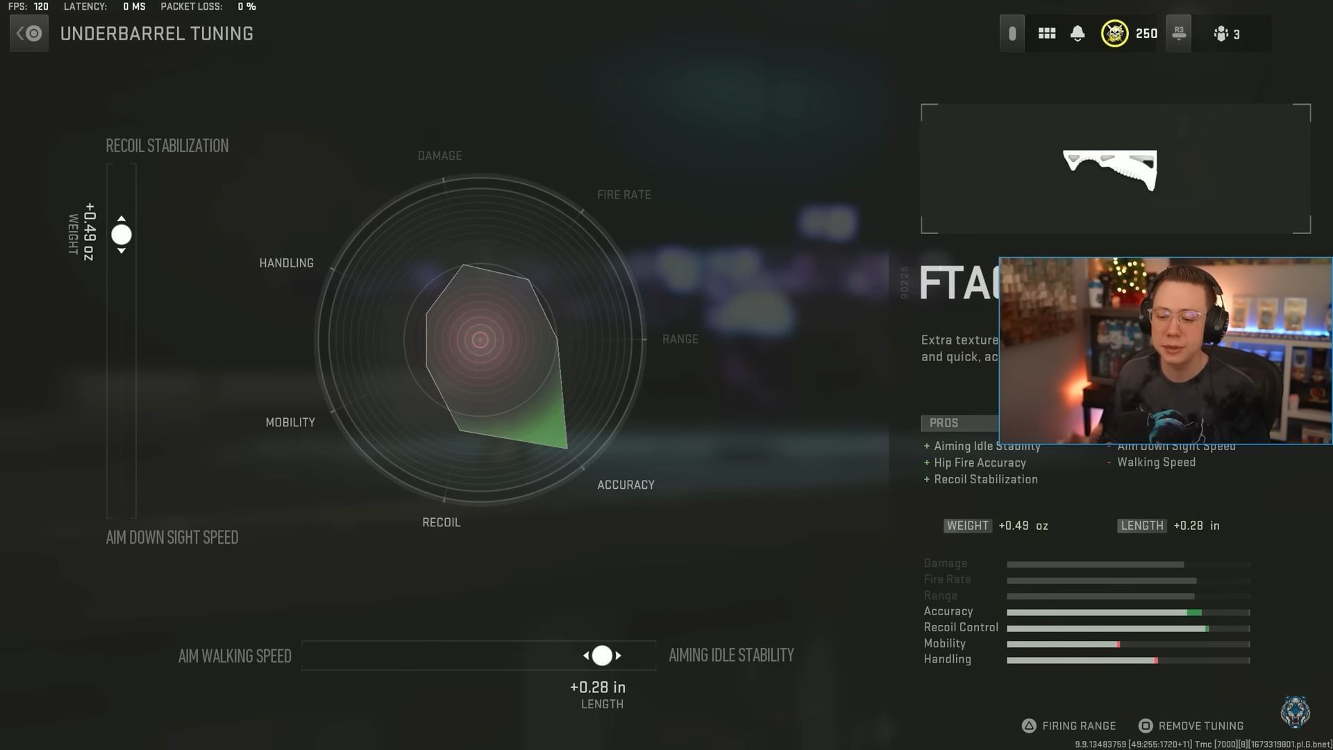 Due to the gun's high recoil, three of the five attachments chosen for the gun are geared towards improving the recoil stats, while the other two slots belong to an optic and a magazine attachment.