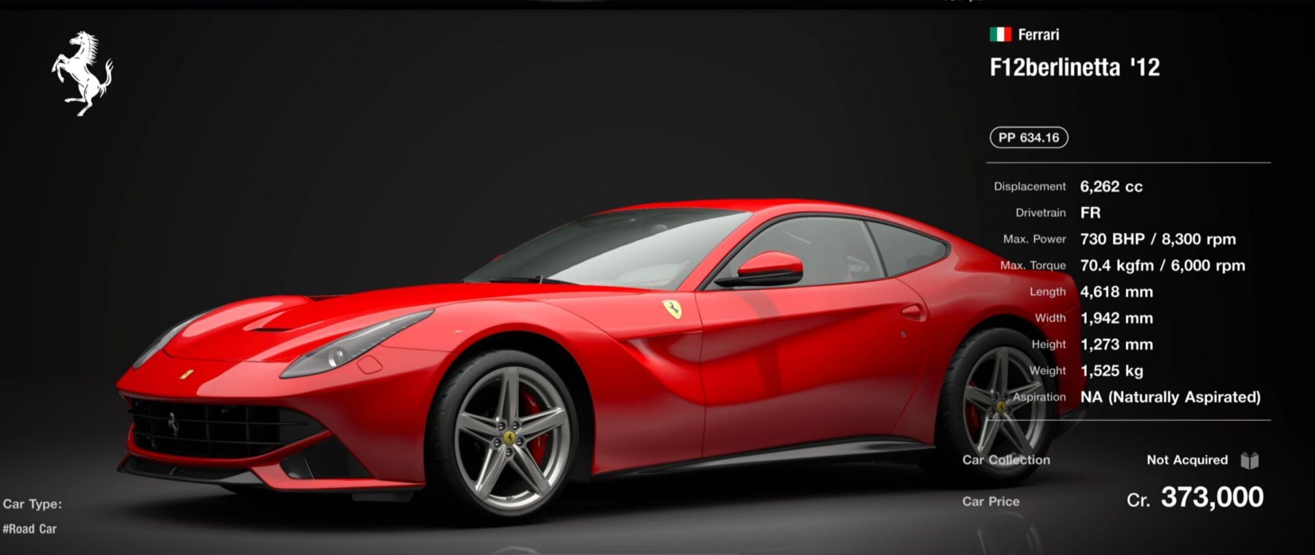 The car starts at 634.16 PP and 6,262 cc, but it can be increased to 792.39 PP and 6,418 cc through parts and improvements. Keeping it at 1,128KG weight is also ideal to make sure it can take turns and pick up speed nicely and easily.