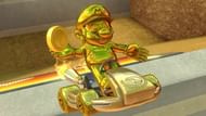 The obvious pick in the Gold Kart is Gold Mario. Gold Mario, with the matching Kart, wheels, and glider, will need a significant amount of gameplay, but the combo is well worth the time and effort due to its high speed and precise control. After all, why shouldn't the most difficult-to-unlock combo be one of the best?