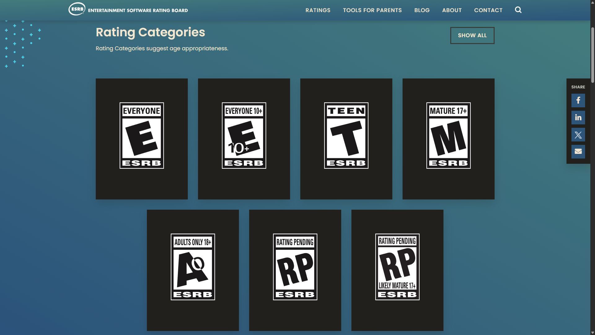 The Entertainment Software Rating Board, or ESRB for short, provides ratings based on the digital content and interactive elements present in entertainment software. These allow consumers and parents to make an informed decision on whether a particular entertainment software is appropriate for their children.