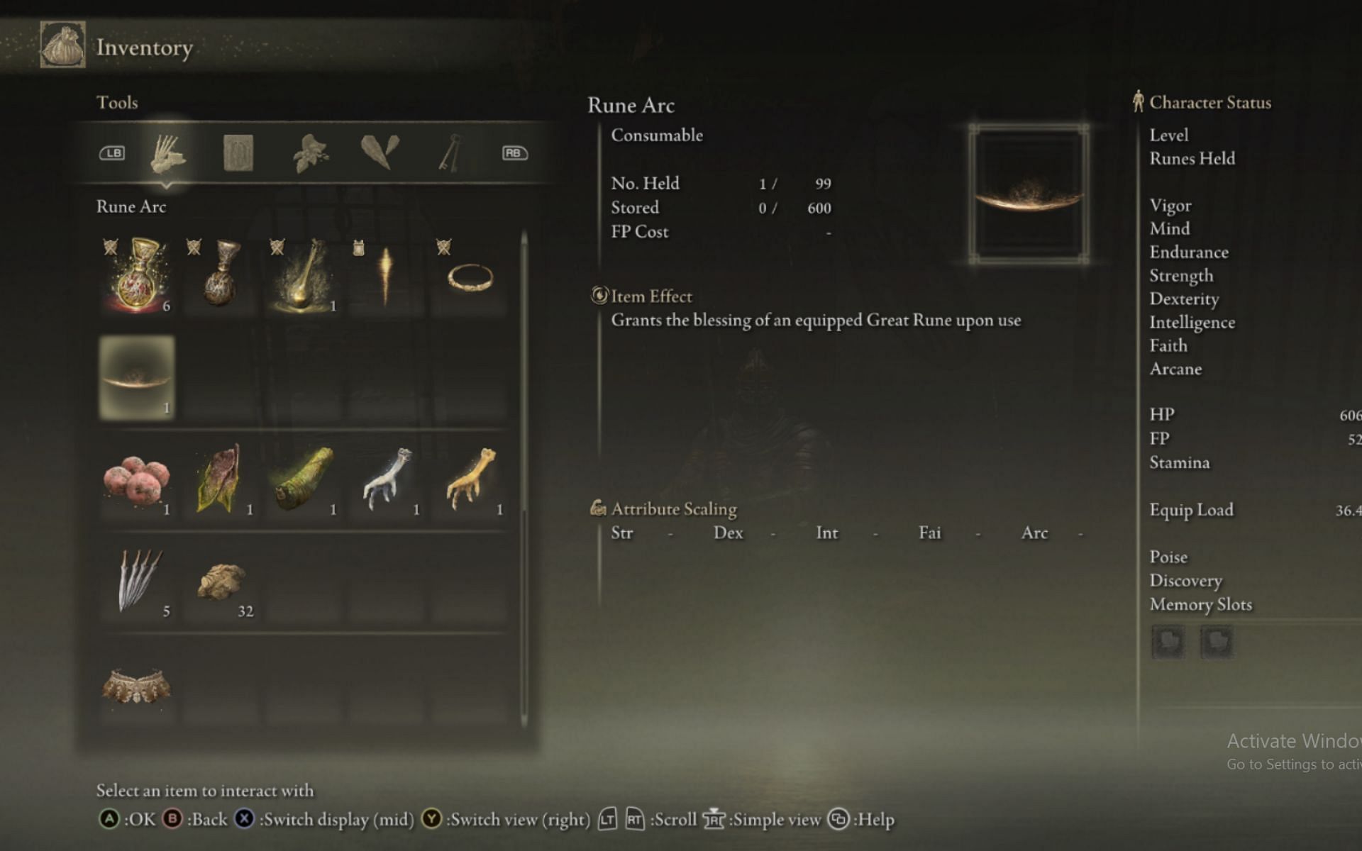 An example of the use of Great Rune would be a boost to all stats in general but using an Arc is required. If a player dies, they will need to reapply the arc benefits to get their buffs.
