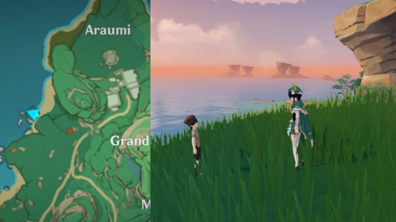 Players can find Kid Kujirai to the southwest of Araumi. He's standing on a cliff by the beach.