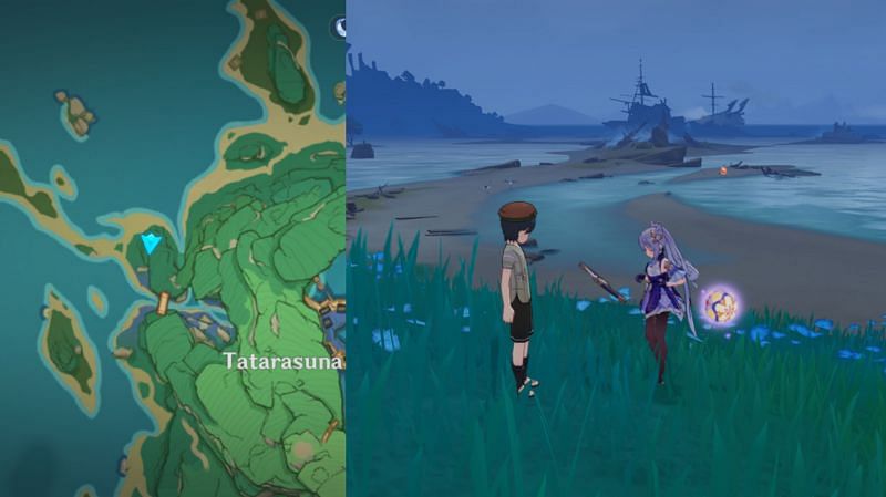 Players can find Kid Kujirai to the east of Inazuma City. He will be standing near a Thunder Sakura Bough.