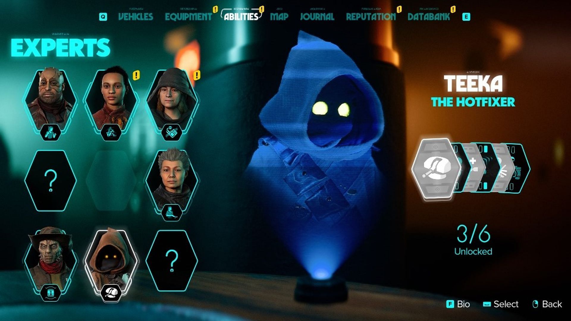 Experts like Teeka in Star Wars Outlaws can be located in different parts of the map tied to side missions called expert quests. The quest for him, when finished, will give you access to him as well as other rewards such as materials for upgrading equipment.
