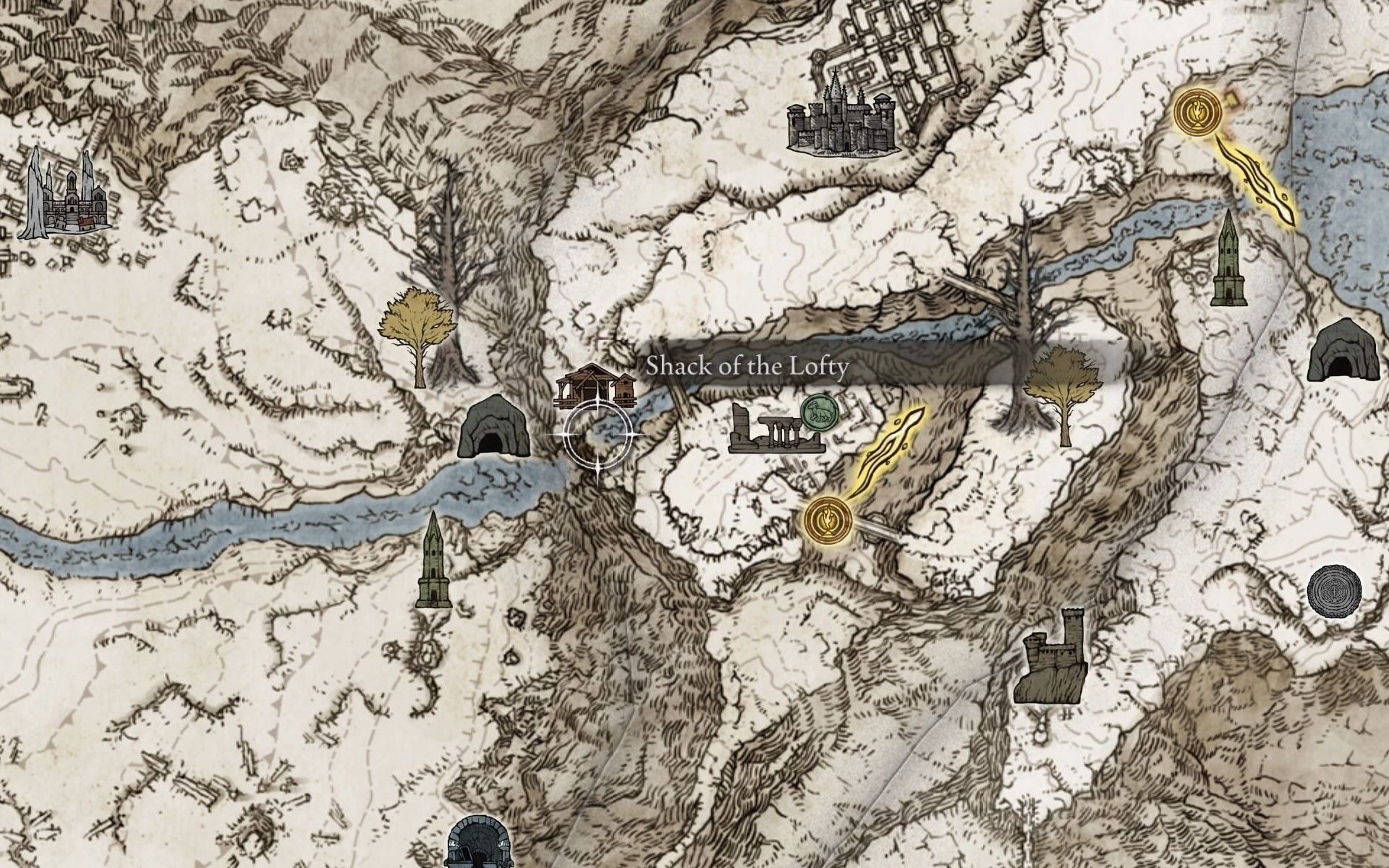- This mark is next to the Shack of the Lofty on the frozen river area.