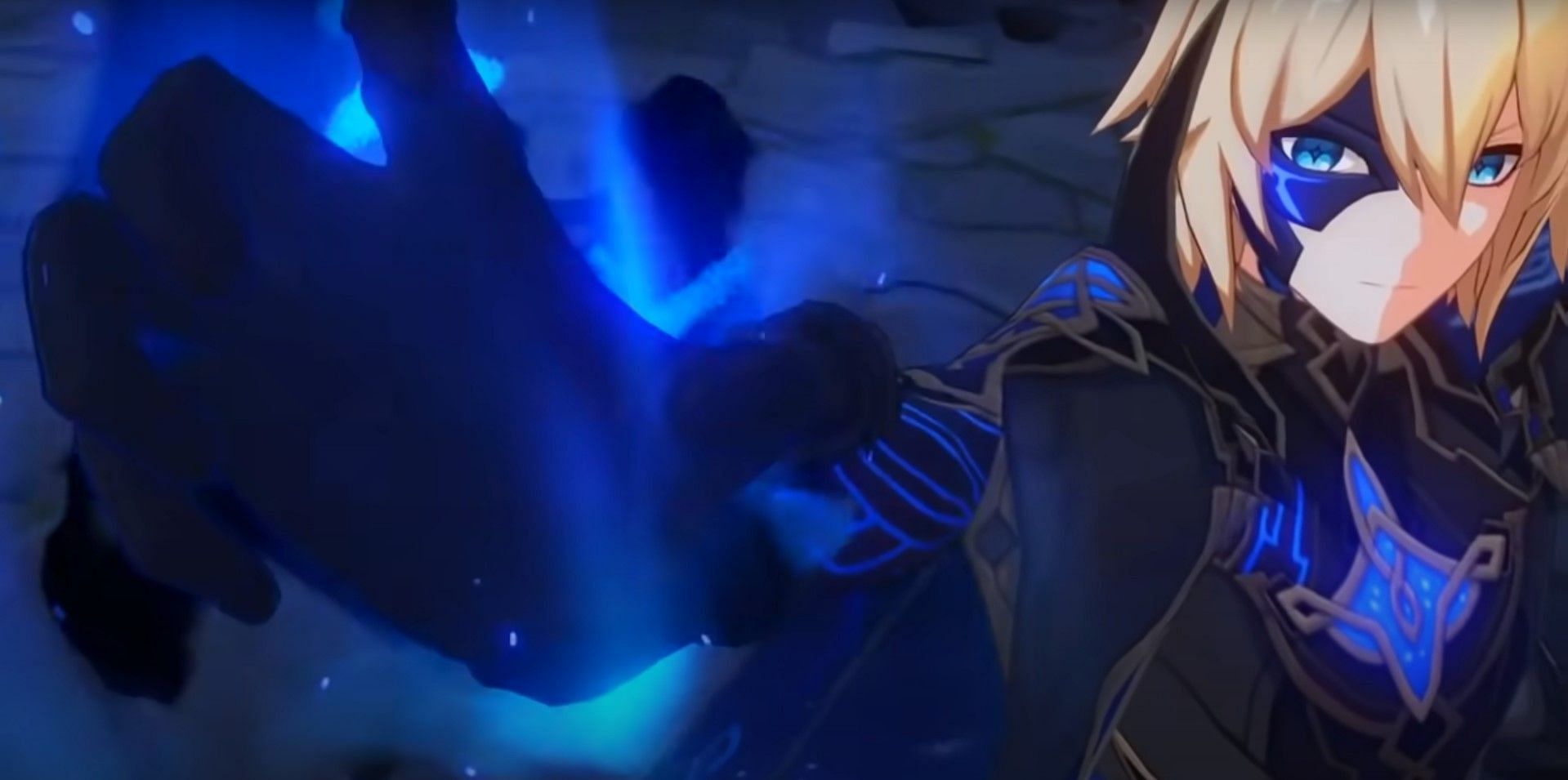 He is seen using a telekinetic chokehold on the Abyss Herald during "A Soul Sets Apart". A blue aura surrounds his hand as he does it, but it's unlike any element currently seen in Genshin Impact.