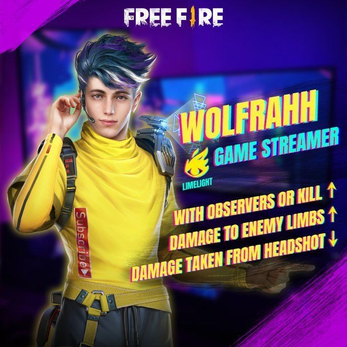 Wolfrahh is supposed to be a 19-year old Swedish video game streamer and esports player. His real name is Leif and his strength lies in playing first-person shooters. Following the popularity of Free Fire on the streaming, this character perfectly fits into the game.