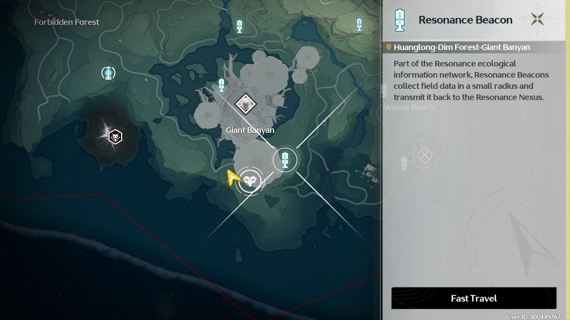 The Giant Banyan puzzle for triple chests can be found at the southern part of the map, directly south of the Feilian Beringal world boss. The easiest way to reach this puzzle is by teleporting to the Resonance Beacon at Huanglong-Dim Forest Giant-Banyan and traveling a short distance to the southwest.