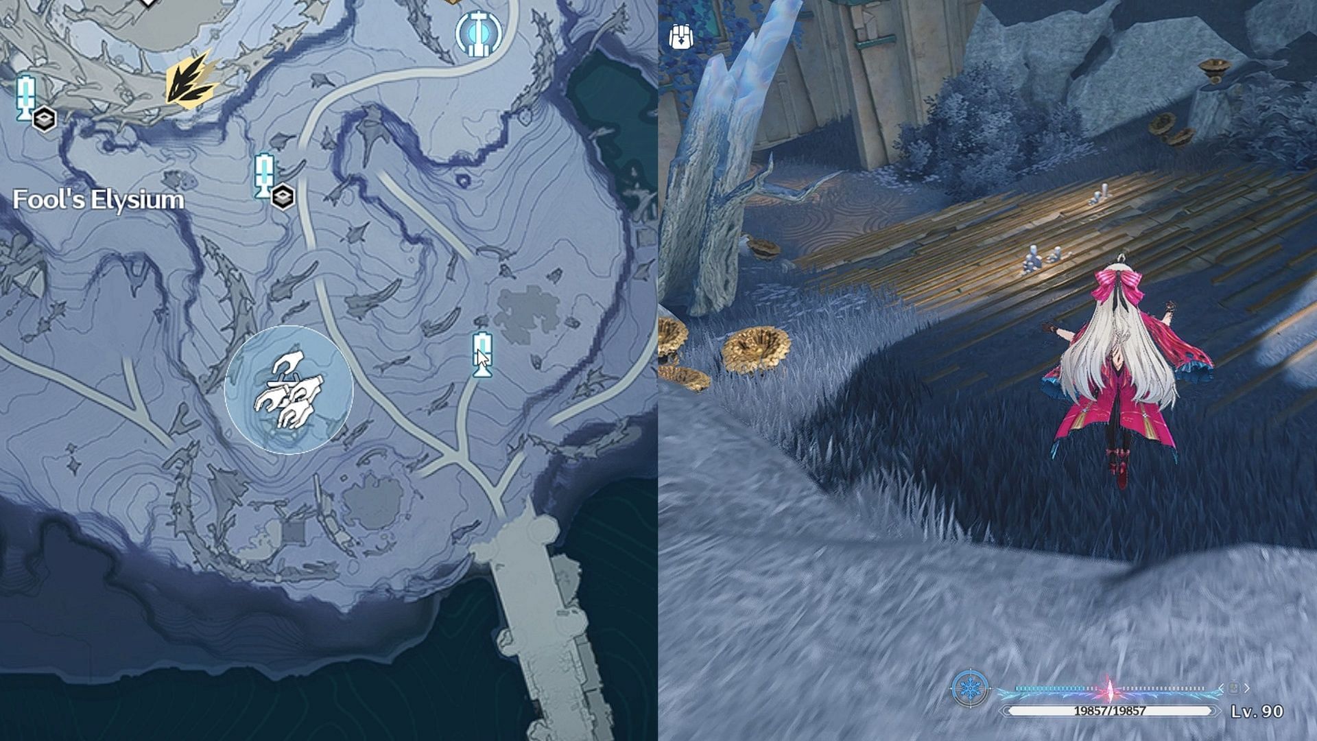 Teleport to the Resonance Nexus in Figurehead's Shrine, then turn right to find several Golden Fleece spawns near the rocks and strange monuments shaped like fishtails. After collecting them, go south to find more spawns around the large skeleton. In total, you can farm up to 25 Golden Fleece at this location.