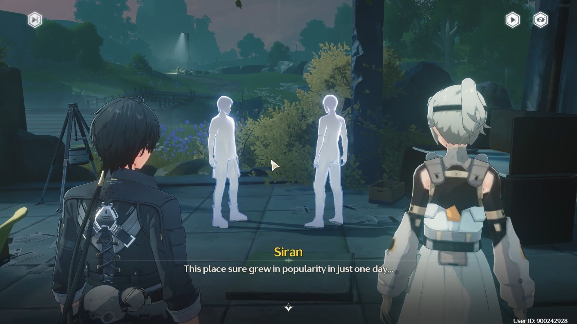 Interact with the three mysterious smokes and defeat the Tacet Discords that spawn after touching it. Talk to Siran after interacting with all three smokes and return to the shelter. You will see two spirits chatting with each other.