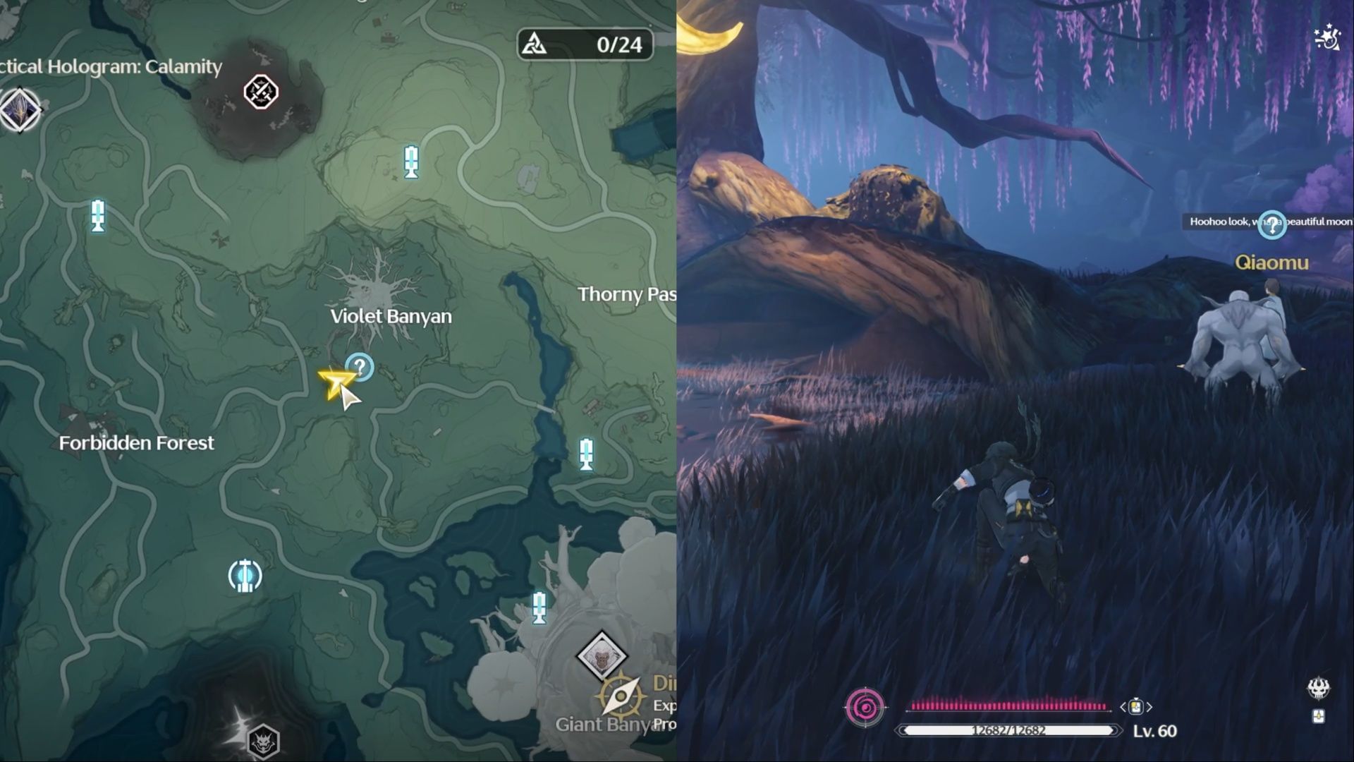 When Moonlight Shines in the Forest quest in Wuthering Waves can be started only after finishing When the Forest is No Longer Dim exploration venture and waiting for 24 hours thereafter. Teleport to the resonance beacon above the Violet Banyan and drop down to interact with Qiaomu and Hoohoo. She will request you to search for four artificial moons to be hung up on the Violet Banyan.