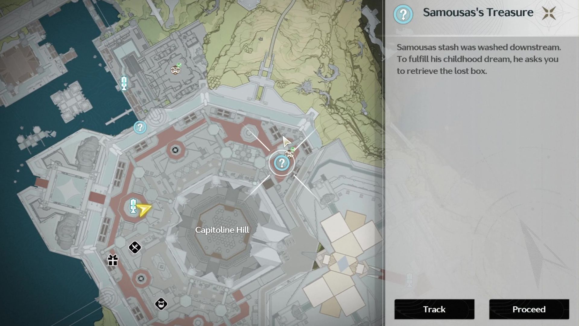 The Samousas’s Treasure quest in Wuthering Waves is named after an NPC, whom you can find in the Capitoline Hill courtyard. Interact with him to learn about the hidden stash that was washed downstream. Your role will be to retrieve the lost box for Samousas in exchange for some rewards